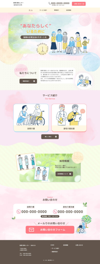 あわせて、採用情報への導線も自然に設け、事業所の雰囲気が伝わるトップページを目指しました。